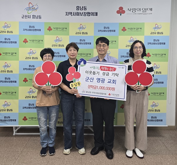 군산영광교회(담임목사 임용섭)는 지난 24일 흥남동에 거주하는 저소득층 가정 자녀들을 위한 하반기 장학금 100만원을 기탁했다.