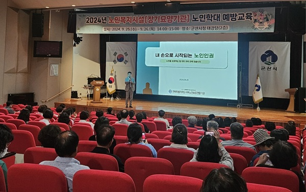 군산시는 25일부터 26일까지 이틀에 걸쳐 군산시청 대강당에서 노인복지시설 및 장기요양기관 대표자, 시설장·종사자들을 대상으로 ‘노인복지시설(장기요양기관) 노인학대 예방교육’을 진행했다.