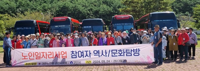(사)대한노인회 군산시지회(지회장 이래범‧이하 군산시노인회)는 지난 24일부터 26일까지 노인일자리사업 공익활동형 참여자 중 읍‧면 지역 거주자(596명)를 대상으로 부안 내소사를 찾아 역사‧문화 탐방을 했다.