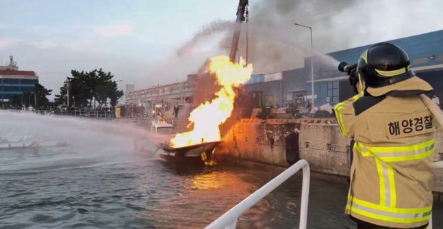 비응파출소 순찰팀이 폭발소리와 함께 불이 나고 있는 것을 확인하고 해경 상황실과 비응119안전센터에 전파했다.