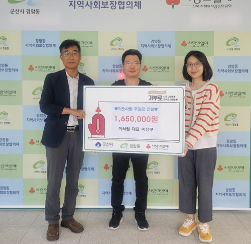 경암동 관계자는 “어려운 이웃을 위해 기부해주신 이삼구 대표에게 깊이 감사드리며 도움의 손길이 필요한 가정에 잘 전달할 수 있도록 하겠다”고 밝혔다.