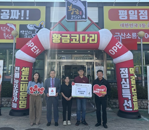황금코다리 소룡점(대표 추행식)이 소룡동 착한가게 44호점으로 가입하며 지역사회를 훈훈하게 했다.