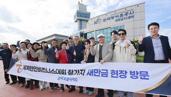 제22차 세계한인비즈니스대회 참가자들이 새만금을 방문해 산업단지 등 내부용지와 주요인프라 추진현황을 청취하고 협력방안을 모색했다.