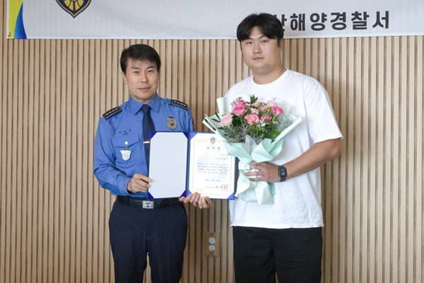 군산해양경찰서(서장 박상욱)는 비응항 수협 위판장 앞 해상에 정박중인 어선 A호(2.99톤, 연안자망) 폭발사고에 초기 진화에 나선 가재승(78년생, 남)씨와 바다에 입수해 선장을 구조하고 심폐소생술을 실시한 박철민(95년생, 남)씨에게 각각 감사장을 전달했다.
