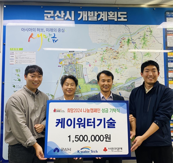 김현석 복지환경국장은 “마음을 모아 나눔 활동을 실천해주신 케이워터기술 군산사업소에 진심으로 감사드린다”며 “정성이 잘 전달되도록 최선을 다하겠다”고 말했다.