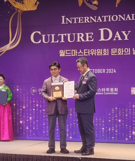 김 대표는 지난달 22일 앰버서더 서울 풀만 호텔에서 열린 ‘2024 월드마스터위원회 문화의날’ 행사에서 월드마스터로 선정됐다.