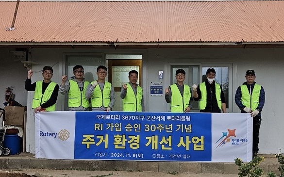 창립 30주년을 맞은 국제로타리 3670지구 군산서해로타리클럽(회장 조방현)과 회원들이 지난 19일 개정면 독거노인 주거환경개선 봉사활동을 벌였다.