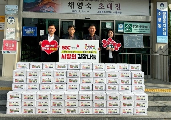 SGC에너지(주)(대표이사 박준영)는 20일 김장철을 맞아 소룡동과 미성동 행정복지센터를 각각 방문 5kg 김치 260상자와 10kg 백미 60포를 기부했다.
