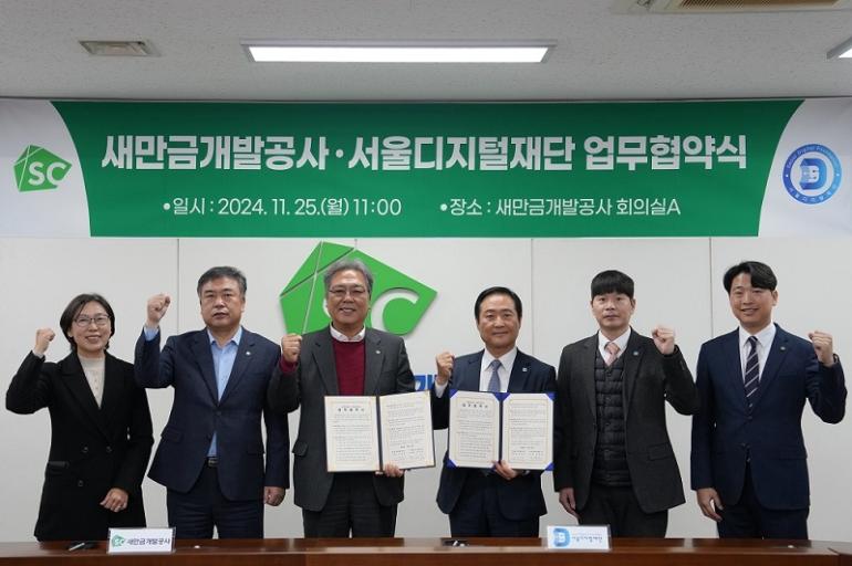 새만금개발공사(사장 나경균, 이하 공사)는 25일 서울디지털재단(이사장 강요식, 이하 디지털재단)과 디지털 전환 및 혁신기술 도입을 통한 새만금 지능형 도시 건설과 재생에너지 사업 분야에서 상호 협력을 골자로 한 업무협약을 체결했다.