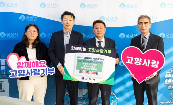 시는 26일 군산재생에너지 관계기업 대표 및 직원들이 고향사랑기부에 동참하며 모은 320만 원을 전달받았다고 밝혔다.