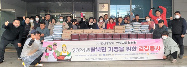 군산경찰서 안보자문협의회(회장 김동일‧이하 안자협)는 최근 탈북민과 함께하는 사랑나눔 김장행사를 진행, 타향에서 생활하고 있는 탈북민을 위로하고 격려했다.
