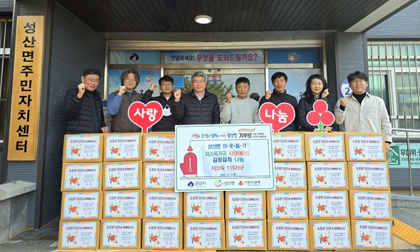 군산시 성산면행정복지센터(면장 최우진)는 5일, 저소득 가구 등 취약층 대상으로 사랑愛 김장김치(총 115가구/가구당 10kg) 나눔 행사를 펼쳤다.