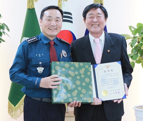 이래범 (사)대한노인회 군산시지회장은 지난 3일 민경 협력치안 활동을 통해 경찰행정 발전에 기여한 공으로 김현익 군산경찰서장으로부터 감사장을 받았다.