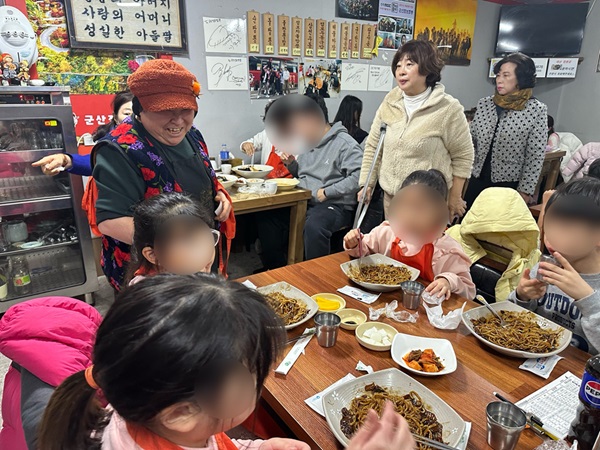 월명동 착한가게 22호점 ‘점보짬뽕(대표 김춘화)’는 지난 10일 명산 지역아동센터 어린이들과 교사 40여명을 초대해 따뜻한 식사를 대접했다.