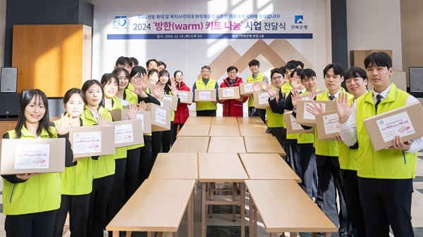 JB금융그룹 전북은행(은행장 백종일)은 창립 55주년을 기념해 전북은행 본점 1층 로비에서 2024 ‘방한(warm) 키트 나눔’ 사업 전달식을 실시했다.