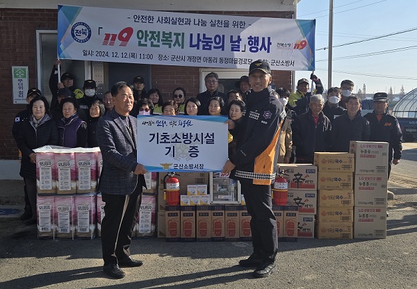 군산소방서(서장 구창덕)는 12일 개정면 아동리 동정경로당을 방문해 ‘119안전복지 나눔의 날’행사를 진행했다.