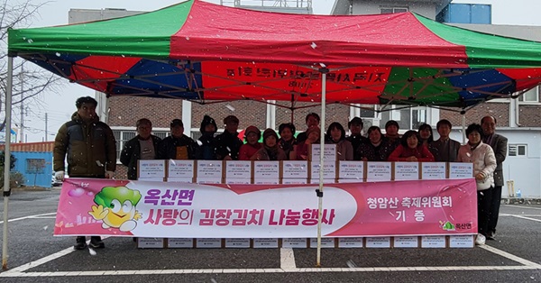 이번 김장김치는 지난 11~13일까지 옥산면 청암산축제위원회를 비롯한 14개 자생단체 후원을 통해 추진됐다.