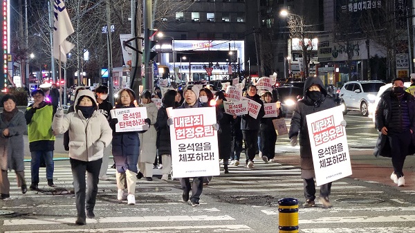 이들은 "탄핵안 가결 이후 윤석열은 '결코 포기하지 않겠다’고 밝혔다"며 "끝까지 잘못을 모르는 뻔뻔함을 보여줬으며 어찌 이런 자를 대통령이라는 자리에 둘 수 있냐"고 비난했다.