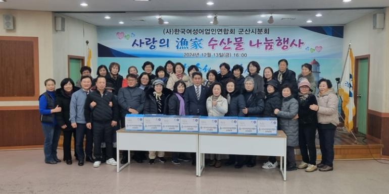 군산시수협(조합장 김광철)과 (사)한국여성어업인연합회 군산시분회(분회장 장경희)는 13일 ‘사랑의 漁家 수산물 나눔’ 전달식 행사를 실시했다고 밝혔다.