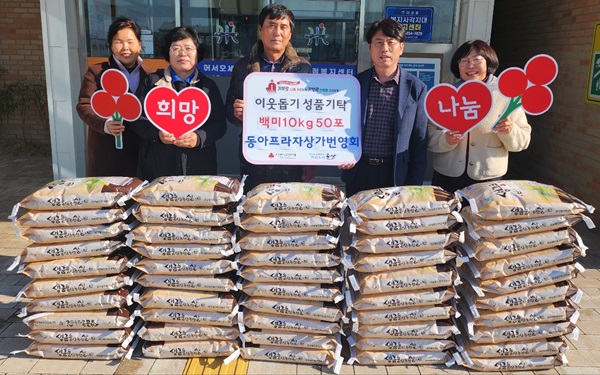 동아프라자 상가번영회(회장 김성수)는 17일 겨울나기에 어려움을 겪는 이웃들에게 전달해 달라며 미성동 행정복지센터에 백미 10kg 50포를 기부했다.