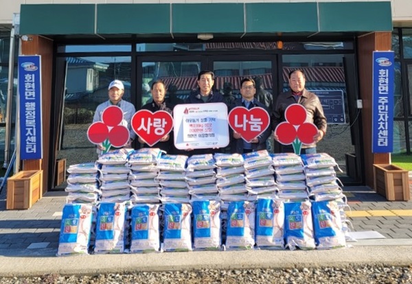 회현면 이장협의회(회장 강희형)는 어려운 이웃들이 우리 쌀의 힘으로 건강한 겨울나기를 바라는 마음을 담아 백미 10kg 50포(130만원 상당)를 기탁했다.