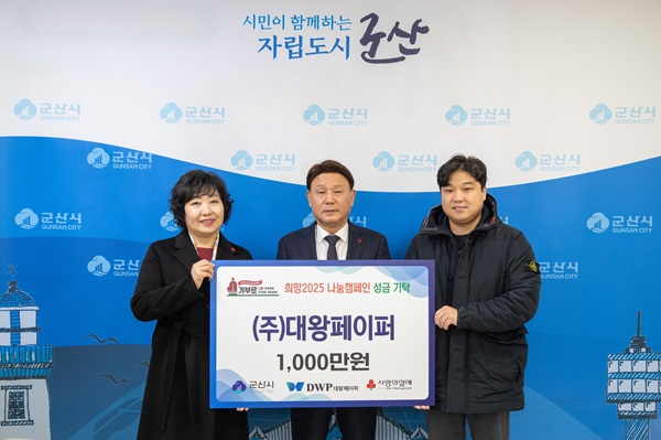 DWP(㈜대왕페이퍼, 대표이사 김동구)가 18일 연말을 맞아 어려운 이웃을 위해 성금 1,000만원을 기탁하며 훈훈한 이웃사랑을 실천했다.