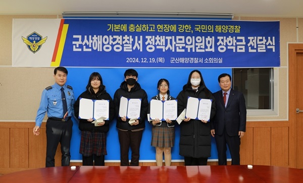 군산해경(서장 박상욱)은 지난 19일 경찰서 3층 소회의실에서 “군산해경정책자문위원회(위원장 고병수 웨스턴마린 대표)가 지역 사회에 따뜻한 나눔의 손길을 전하기 위해 장학금 전달식을 개최했다”고 20일 밝혔다.