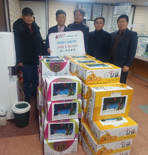 옥산교회(담임목사 김기철)가 성탄절을 맞아 옥산면 특산품인 옥산한과(찰보리한과)와 감귤 나눔 행사를 실시해 훈훈한 감동을 전했다.