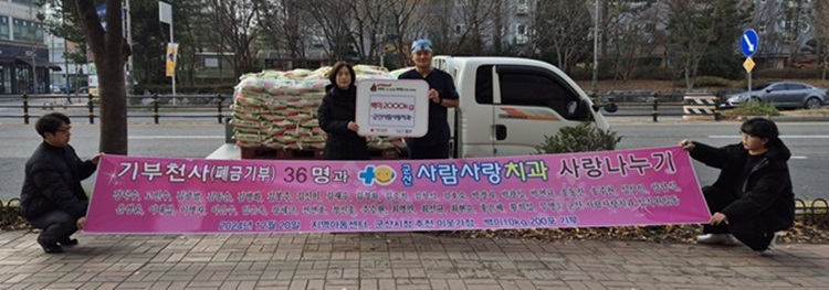곽은하 수송동장은 “해마다 지속적으로 온정을 베풀고 있는 군산사람사랑치과 관계자분들께 감사드린다”며 “쌀쌀해진 날씨에 더욱 힘든 시기를 보내고 있을 소외된 이웃에게 풍요로운 나눔이 될 수 있도록 잘 전달하겠다”고 밝혔다.