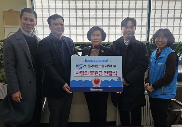 한국해운조합 서해지부(지부장 김근표)가 지역 어르신들을 위해 후원금을 전달하며 이웃사랑을 실천했다.