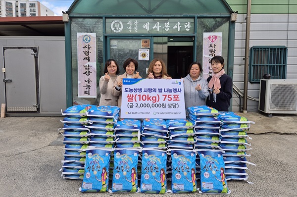 NH농협 군산시지부(지부장 원천연)는 23일 산북동에 위치한 (사)예사봉사단(대표 김도경)을 방문해 ‘사랑의 쌀 나눔활동’을 펼쳤다.