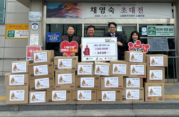 지난 26일 소룡동에 위치한 성은교회(담임목사 장영래)가 연말연시를 맞아 소룡동 경로당 19개소와 미성동 경로당 5개소에 사랑의 꾸러미를 전달해 지역 어르신들에게 따뜻한 나눔의 손길을 전했다.