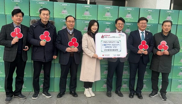 군산중앙성결교회(담임목사 김영우)가 27일 신풍동에 사랑의 선물 꾸러미 100상자(500만원 상당)을 전달했다.