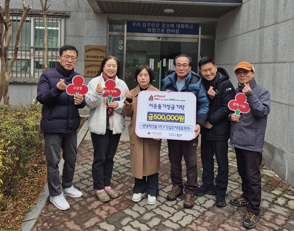 30일 미장동 현대파인빌1차 입주자대표회(대표 김택수)는 관내 생활이 어려운 이웃들을 위해 모은 성금 50만원을 수송동 행정복지센터에 기탁해 희망2025 나눔캠페인에 동참했다.