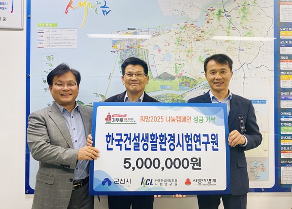 한국건설생활환경시험연구원(원장 천영길)은 2일 ‘희망2025나눔캠페인’에 동참하며 어려운 이웃을 위해 성금 500만원을 전달했다.