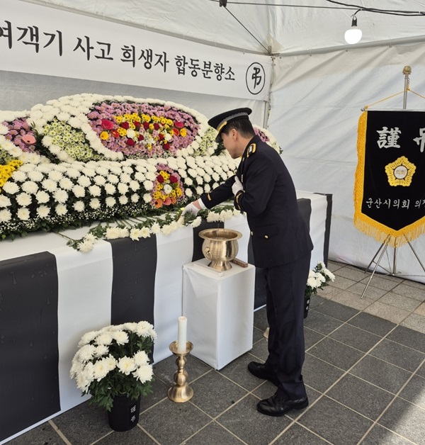 시무식이 끝난 이후 박 서장을 비롯한 과장들은 군산시청에 마련된 제주항공 사고 희생자 합동분향소를 방문해 추모하고 호국영령들의 숭고한 희생정신을 기리기 위해 나운동 소재 군경합동묘지를 방문해 참배했다.