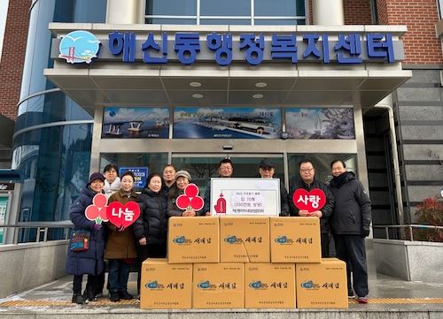 해신동 지역사회보장협의체는 9일 어려운 이웃들의 따뜻한 겨울나기를 위해 취약층에 김 70톳(250만원 상당)을 전달했다.