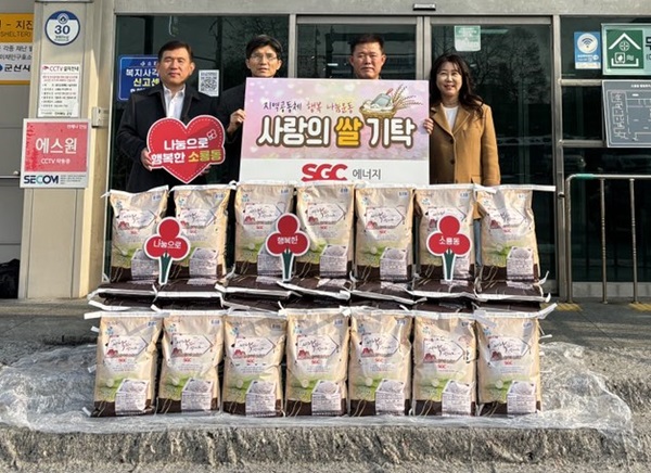 SGC에너지(주)는 매년 설과 추석 명절마다 백미를 기탁해 왔으며 이외에도 장학금 지원사업과 겨울철 김장김치, 연탄, 등유 지원 등 다양한 나눔 활동을 펼치며 지역사회의 복지 향상에 힘쓰고 있다.