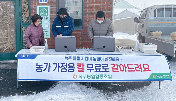 옥구농협(조합장 전봉구)은 새해를 맞아 지난 7일부터 지역농가 주방에서 사용하는 가정용 칼을 무료로 갈아주는 사업을 진행하고 있다.