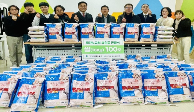 두란노교회는 31일 10kg 쌀 100포를 군산종합사회복지관(관장 황성덕)에 전달했다.