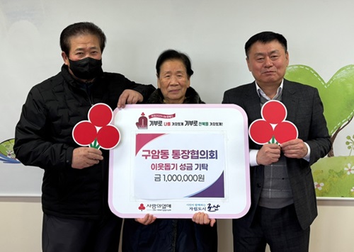 구암동 통장협의회(회장 김삼례)가 지역사회 복지증진을 위한 구암동 복지 허브화 기금으로 100만원을 기부했다.