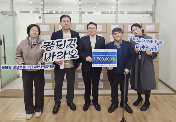 정영민 전북은행 지점장은 “모두가 어려운 상황이지만 이번 나눔행사가 기부문화 확산과 취약층 이웃에 대한 관심 확대에 도움이 되길 바란다”며 “지속적인 나눔을 통해 따뜻한 금융을 실현하기 위해 노력하겠다”고 전했다.