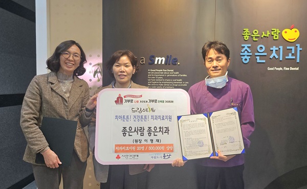 ‘좋은사람 좋은치과’는 취약층 아동 매년 20명에게 무료로 치과 치료지원 협약을 드림스타트와 지난 17일 체결했다.