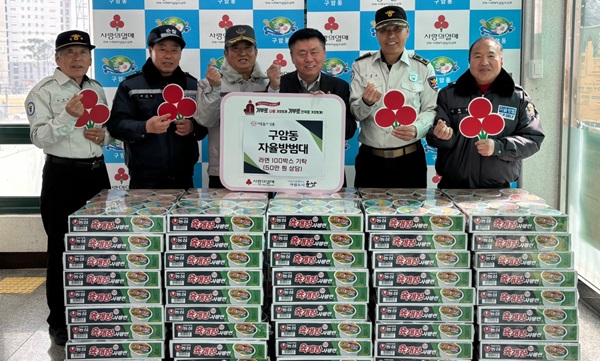 구암동 자율방범대(대장 송기덕)는 취약층 아동을 돕기 위해 50만원 상당의 라면 100박스를 구암동 관내 지역아동센터에 기부했다.