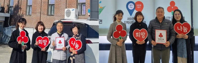 이에 서수면 보듬이지역사회보장협의체는 새롭게 서수면 착한가게에 가입한 시온교회, 광진건설(주)에 인증 현판을 전달했다.