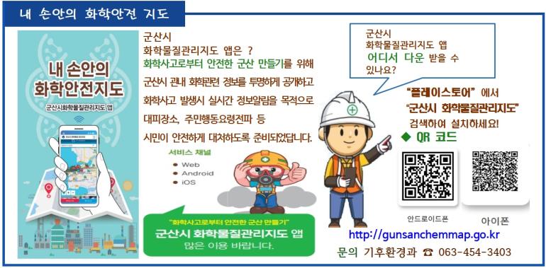군산시가 화학물질로부터 안전한 도시가 되기 위해 군산시 화학물질관리지도 앱 홍보에 나섰다.