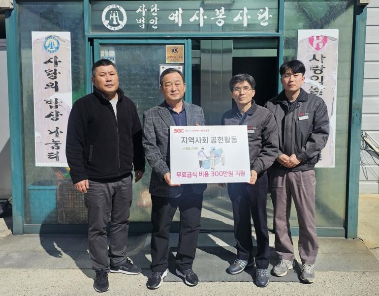 이날 전달된 후원금은 SGC에너지(주) 임직원들의 자발적인 모금 활동으로 마련됐으며 주변 지역 소외층과 어르신들의 무료급식에 사용될 예정이다.
