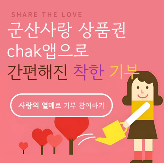 군산시가 군산사랑상품권 구매‧결제 애플리케이션 군산사랑상품권(chak) 앱에 상품권 기부 기능을 추가했다.