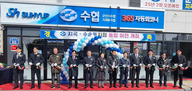 군산시수협(조합장 김광철)은 25일 지곡동지점 이전 개점식을 열었다. 이날 개점식에는 김광철 조합장을 비롯해 조합원과 임직원, 지역주민 등 100여명이 참석해 군산시수협 지곡동지점의 새로운 출발을 축하했다.