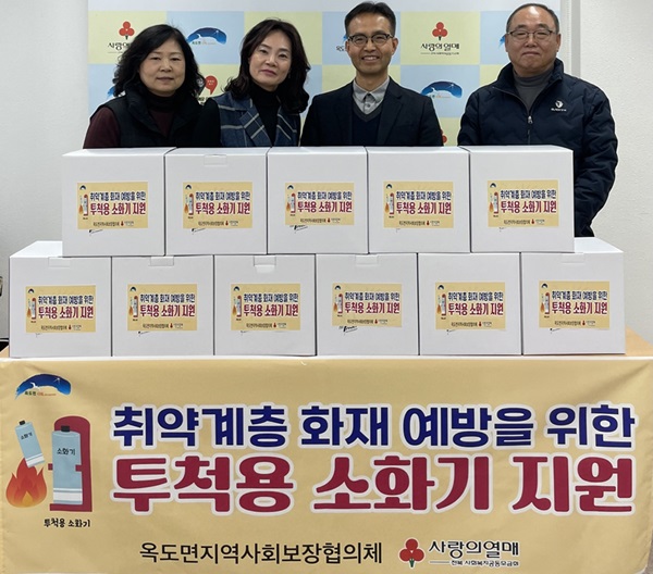 옥도면 지역사회보장협의체는 관내 화재 취약가구 20세대에게 100만원 상당의 투척용 소화기를 전달했다.